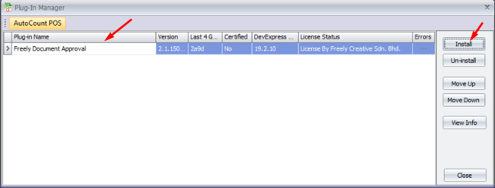 button - Please log out and then log back into AutoCount Accounting. Ensure that the plugin takes effect by restarting the software. Don’t forget to close the Plugin Manager window before restarting AutoCount.