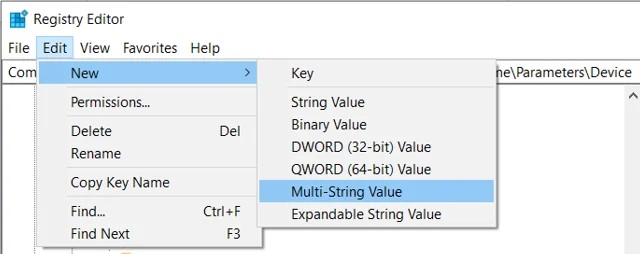 b ii) On the Edit menu, point to New, and then select Multi-String value. Name it ForcedPhysicalSectorSizeInBytes.
