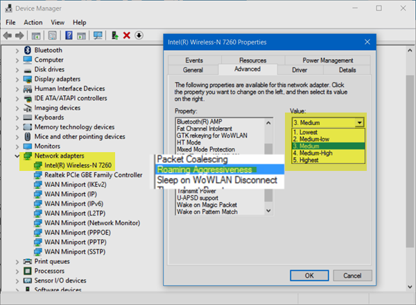 If you wish to improve the Wi-Fi reception and performance on your Windows PC, you may want to consider changing the WiFi Roaming Sensitivity or Aggressiveness. Roaming Sensitivity is the rate at which your device selects and switches to the nearest available point of access, offering a better signal. It is based on the signal strength and quality – and not on the distance to the WiFi point.