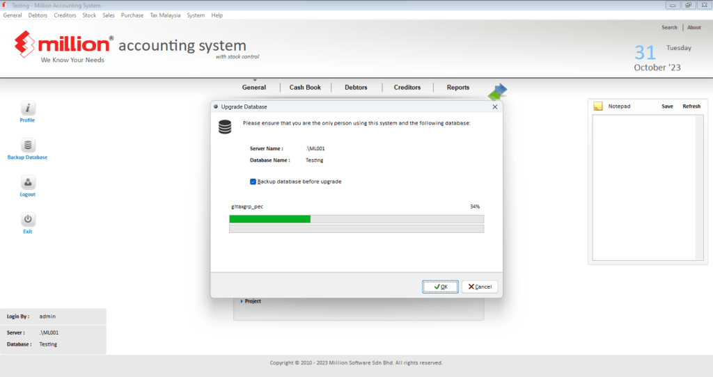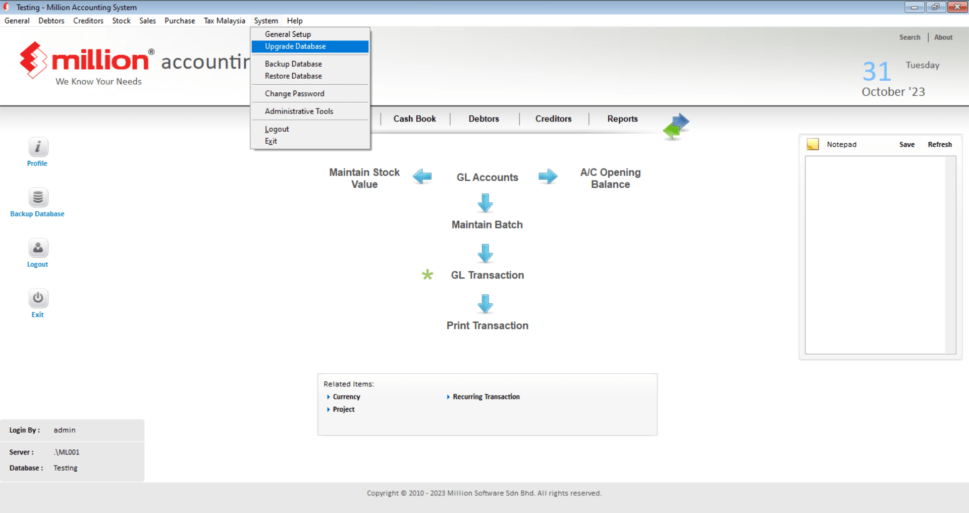 1. Click on System > Upgrade Database #