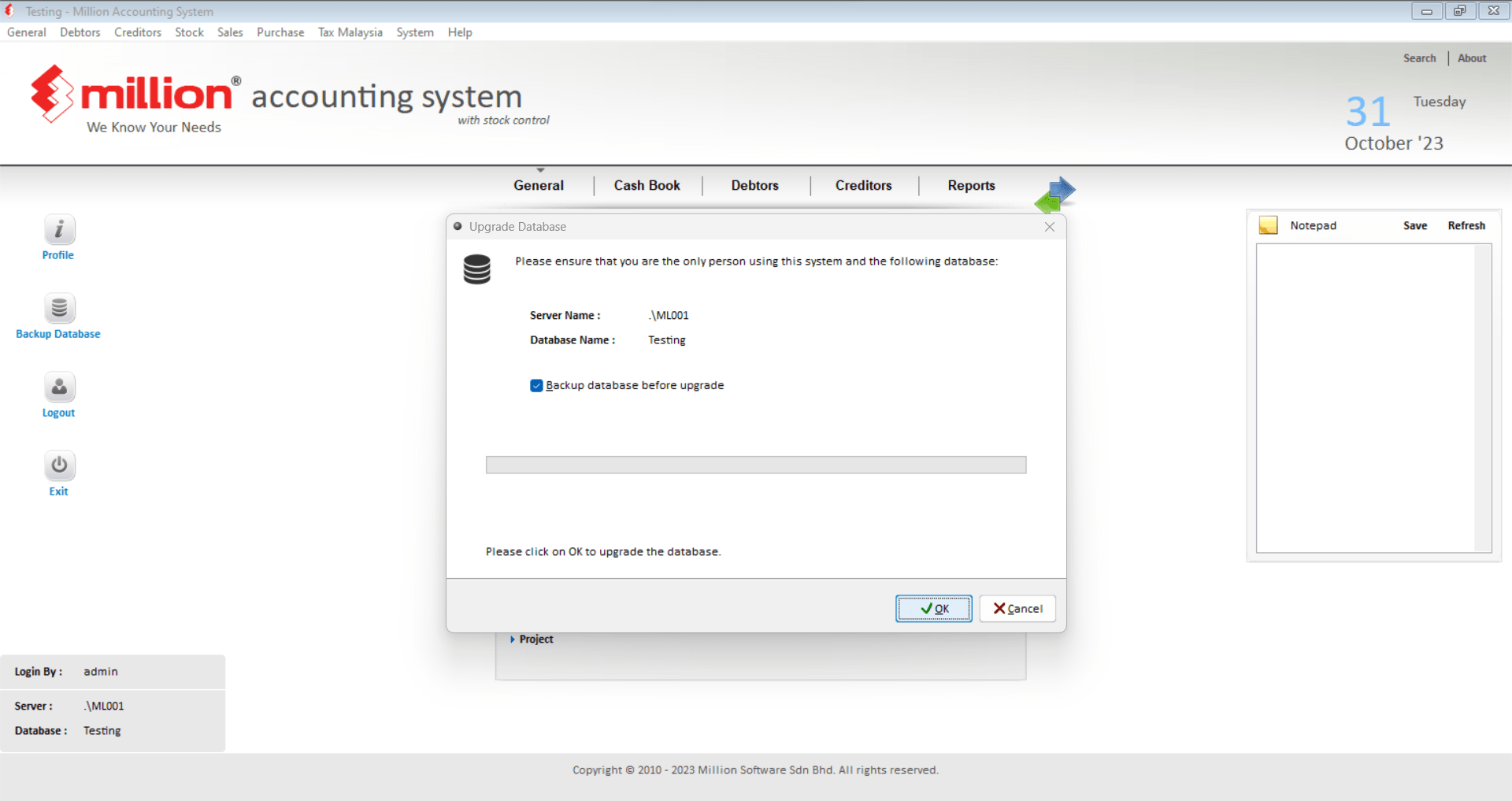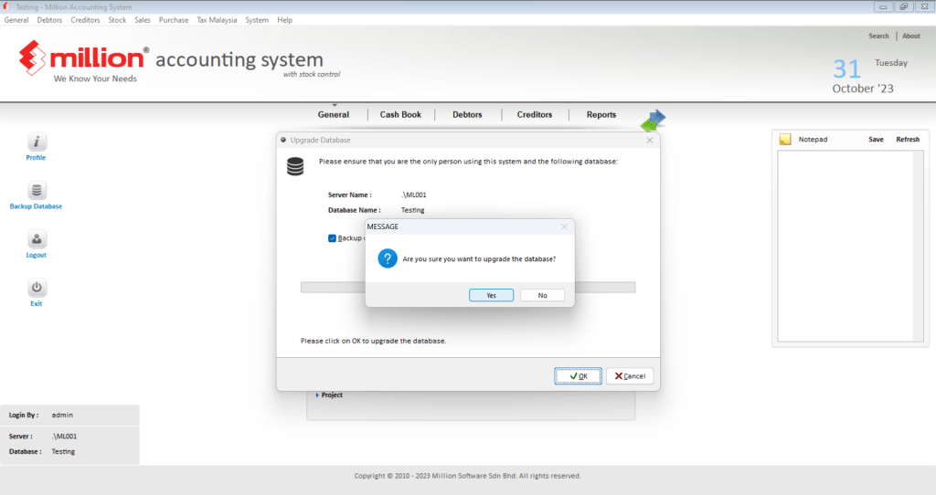 3. Click the Yes button to upgrade the database. #