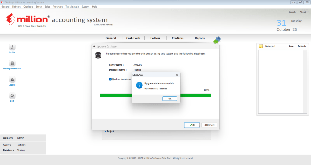 4. You have successfully to upgrade the database. #