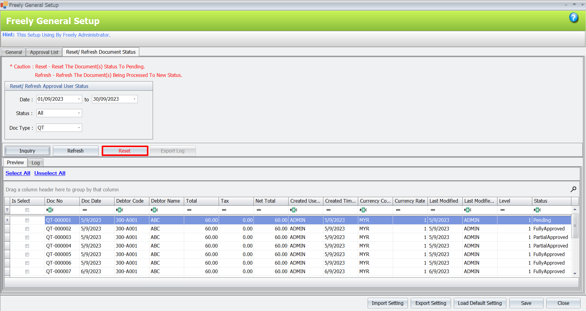 - After adding new users, this “Reset” button will affect “USERA” approval status.
